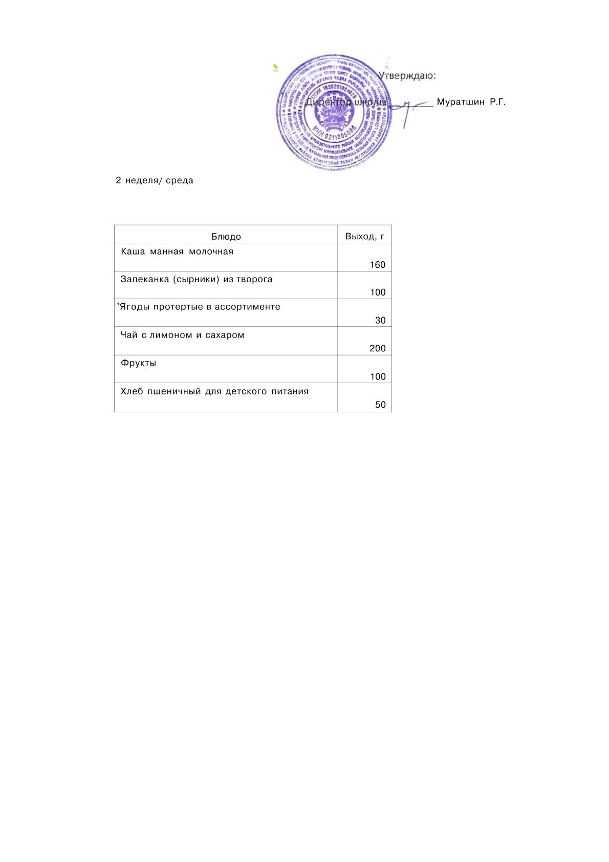 Примерное меню